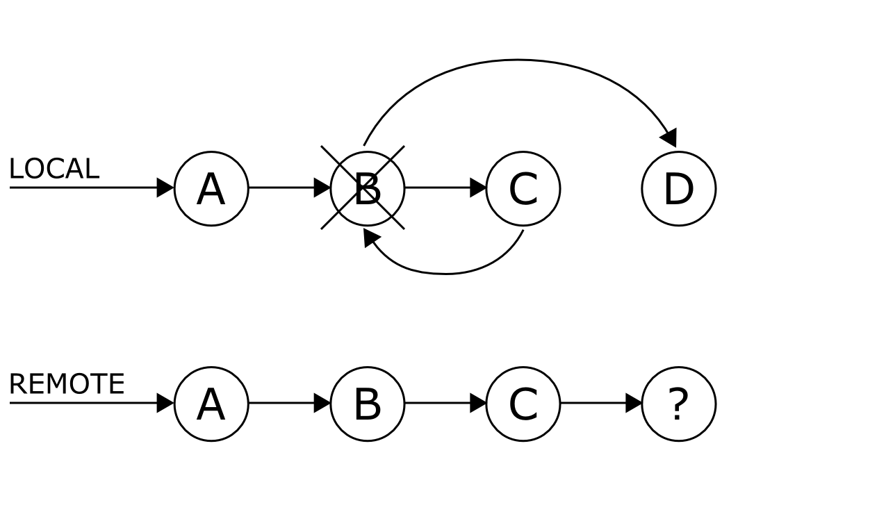 Bisect will provide us with commit-id of the middle commit to test, and then guide us through simple bisection process. You can read more about it in official Git Tools In our example we will end up with commit B, that introduced bug/error. We have 4 options on how to remove it (or part of it) from our repository.