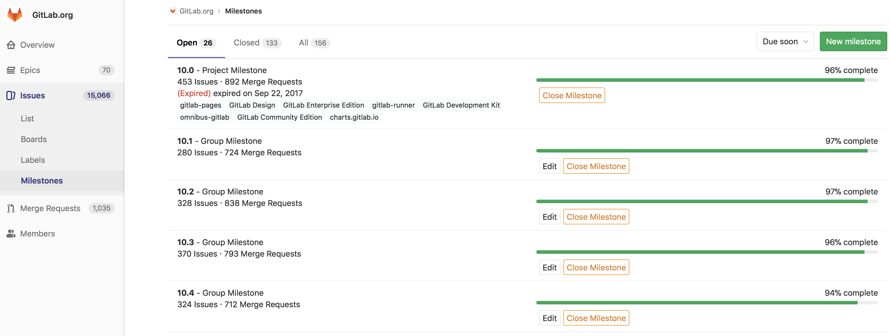 Filtering issues and merge requests by milestone